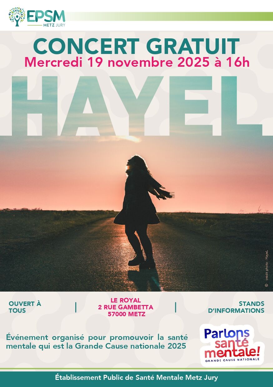 Dans le cadre de la Grande cause nationale, l'hôpital de Jury vous invite à un événement musical gratuit et ouvert à toutes et à tous (entrée libre). HayeL, auteur-compositeur-interprète folk, montera sur scène accompagné de Sarah Tanguy (violoncelle) et Sacha RidolfiMatte (guitare électrique). Il présentera notamment, La nuit polaire, album qui aborde avec sincérité et poésie son vécu du trouble bipolaire.
