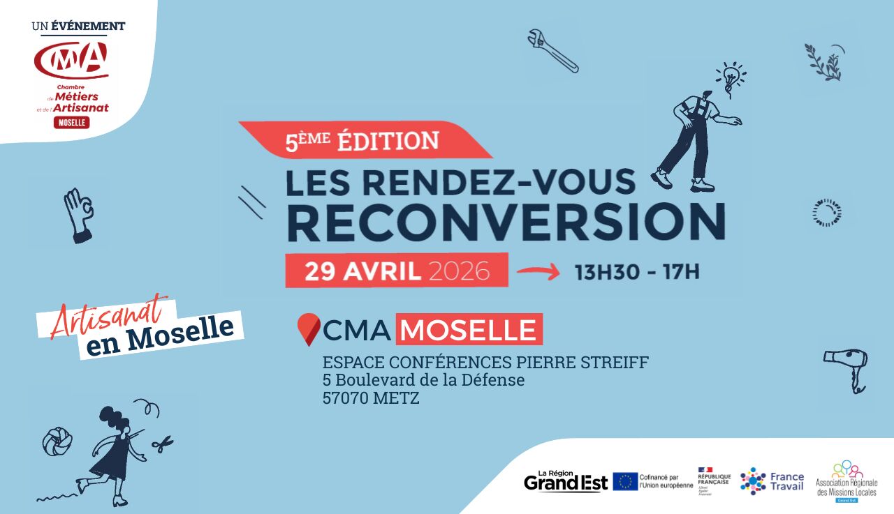 Vous avez une idée, un projet de reconversion ou de requalification dans l’artisanat. Vous voulez maitriser tous les éléments de la réussite pour vous décider ? La Chambre des Métiers et de l’Artisanat Grand Est rassemble pour vous pendant une journée, sur un même lieu, tout son réseau. Les RDV Reconversion vous aideront à y voir plus clair, que vous arriviez avec une simple idée ou un projet plus avancé.